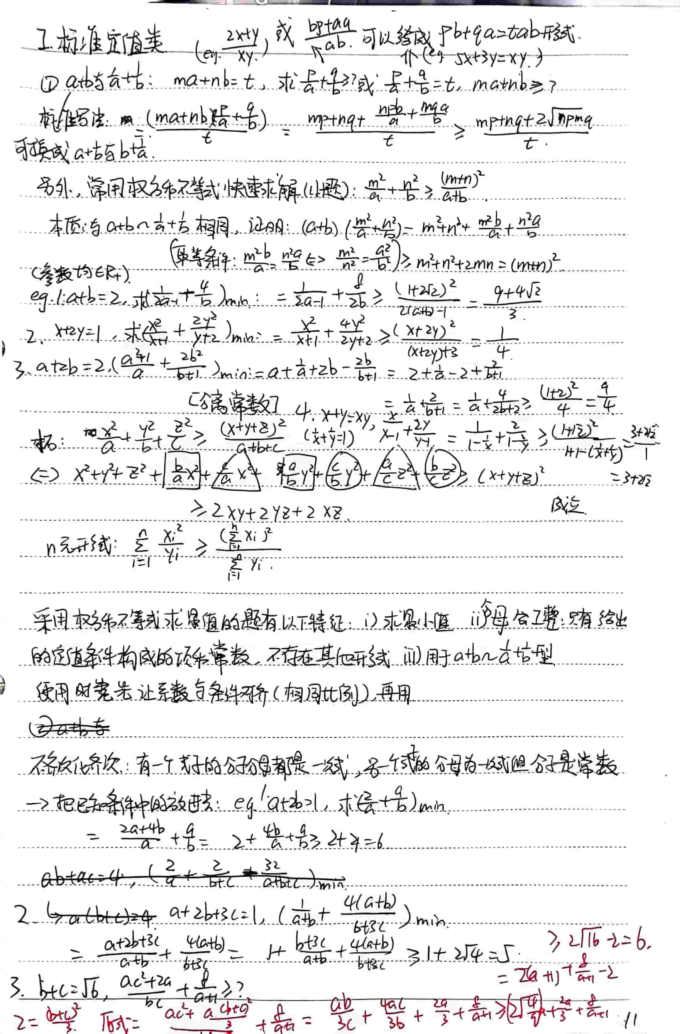 我的笔记适合于具备扎实数学基础,想要学习拔高技能的同学。比如就基本不等式来说,如果没有听说过权方和不等式,就没有必要看了。另外由于本人写字不工整,也没有良好的排版,阅读起来会有相当的困难,请酌情阅读。